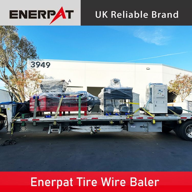 The ENERPAT Hopper style automatic Tire Wire baler (model AMB-H1075-250) is perfect for fast pressing aluminum cans, steel cans, and light scrap metal into dense bales. This model features a pressing force of 250 tons, a compression chamber size of 1000×750 mm, producing bales of 250×250 mm, with a motor power of 44 kW (22+22 kW) and fully automatic operation. We also offer other models with pressing forces ranging from 200 to 225 tons, bale weights from 25 kg to 100 kg, and motor power from 30 kW to 74 kW. All models can produce 60-90 bales per hour.