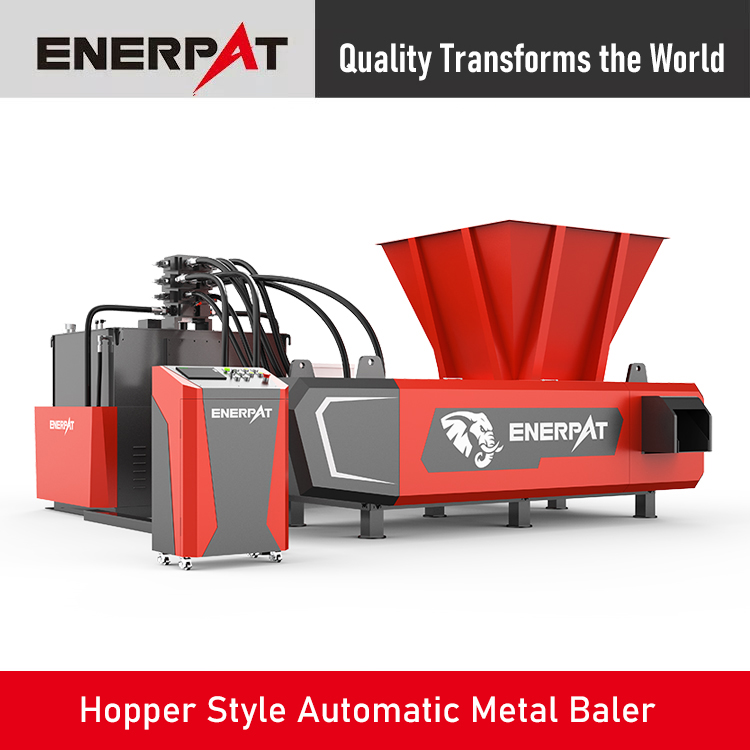 The AMB-H series continuous press baler is at work in plants of all kinds. An Enerpat metal baler cuts scrap volume, frees floor space, trims hauling costs and, more important, boosts furnace output while pushing smelting costs down. Each unit carries a Siemens motor and a Hardox wear plate, and its rugged build keeps it running for years.