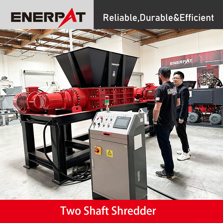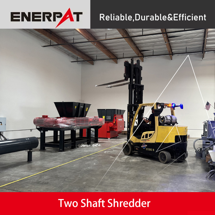 MSB-E series Double Shaft Shredder from Enerpat is a shredding machine for a wide range of applications. It utilizes the principle of mutual shearing and tearing between two relatively rotating knives, which can efficiently shred the solid waste generated from various industries. The whole machine has passed CE certification authorized by EU and has a very complete range of models so that it can meet the actual needs of different customers.